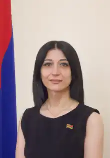 In 2015 she was a founding member of the Civil Contract party.[1] She supported the Way Out Alliance as a clerk in the Armenian Parliament between 2017 and 2018.[1] In June 2018 she became as an assistant to Nikol Pashinyan, the Prime Minister of Armenia of the Civil Contract. In the Parliamentary elections of December 2018, she was elected as a Member of Parliament for the Civil Contract of the My Step Alliance.[1] In June 2019 she was elected as one of two women into the Board of the Civil Contract party.[2] In Parliament, she defended the view that a country is in need of a healthy efficient opposition, but denied the current opposition were assuming such a role in January 2021.[3]