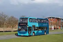 The most common double deck type in the fleet is the Alexander Dennis Enviro400 - all 40 of which are currently operated on Sapphire services based at Wrexham, Chester[14] and Rhyl[15] depots respectively. The majority of these were delivered brand new - however eleven of these were refurbished after being released from Arriva North West.[16][17]