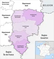 The borders of the arrondissements of Aisne were modified in January 2017:[4]