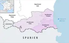 Map of arrondissements of the Pyrénées-Orientales department.