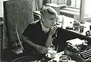 The writer is the protagonist in the third part of the novel and influences the development of the first-person narrator as a writer in a field of tension contrasted with Brecht. Her last months in Alingsås and her suicide are also depicted.