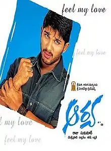 Arya is a 2004 Indian Telugu-language romantic action comedy film written and directed by Sukumar in his directoral debut , Produced by Dil Raju under Sri Venkateswara Creations banner, the film stars Allu Arjun, Anu Mehta, and Siva Balaji. The music was composed by Devi Sri Prasad and cinematography was by R. Rathnavelu. The plot revolves around Arya, an outgoing and free-spirited boy falling in love with Geetha, an introverted girl who is on the shield of another person Ajay.