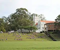 In 1925 the house Grantuly was purchased to establish a Catholic school and a convent. Archbishop Duhig invited the Sisters of Charity (then in Sydney) to establish the school and convent. St Finbarr's Catholic School opened on 1 June 1925.[33][12][34] In 1927 a new primary school was built beside St Finbarr's Catholic Church and Grantuly then become a Catholic secondary school for girls. In 1941 it became known as Mt St Michael's College. The primary school passed into lay leadership in 1981 but the Sisters of Charity Education Council still operate the college.[35]
