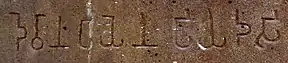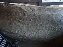 Takshashila was a prosperous and geopolitically influential city, and historical evidence proves that by Ashoka's time, it was well-connected to the Mauryan capital Pataliputra by the Uttarapatha trade route.[55] However, no extant contemporary source mentions the Takshashila rebellion, and none of Ashoka's records states that he ever visited the city.[56] That said, the historicity of the legend about Ashoka's involvement in the Takshashila rebellion may be corroborated by an Aramaic-language inscription discovered at Sirkap near Taxila. The inscription includes a name that begins with the letters "prydr", and most scholars restore it as "Priyadarshi", which was the title of Ashoka.[51] Another evidence of Ashoka's connection to the city may be the name of the Dharmarajika Stupa near Taxila; the name suggests that it was built by Ashoka ("Dharma-raja"). [57]