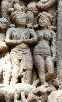 According to the Sri Lankan tradition, Ashoka visited Vidisha, where he fell in love with a beautiful woman on his way to Ujjain. According to the Dipamvamsa and Mahamvamsa, the woman was Devi – the daughter of a merchant. According to the Mahabodhi-vamsa, she was Vidisha-Mahadevi and belonged to the Shakya clan of Gautama Buddha. The Buddhist chroniclers may have fabricated the Shakya connection to connect Ashoka's family to Buddha.[64] The Buddhist texts allude to her being a Buddhist in her later years but do not describe her conversion to Buddhism. Therefore, it is likely that she was already a Buddhist when she met Ashoka.[65]