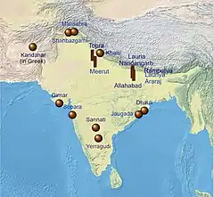 (in Brahmi script: Kalsi, Girnar, Sopara, Sannati, Yerragudi, Delhi Edicts)
