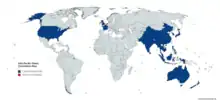 Australia, Bangladesh, Cambodia, People's Republic of China, France, India, Indonesia, Japan, Republic of Korea, Malaysia, Myanmar, Nepal, New Zealand, Pakistan, Philippines, Vietnam, Sri Lanka, Timor Leste, Thailand, United Kingdom, United States