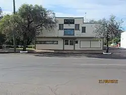 The Astor Theatre is situated in the commercial centre of Surat and is a simple rectangular timber building set on low stumps. The roof is gabled and clad in corrugated iron and is concealed from the front by a deep stepped parapet. There are louvred openings in the upper section of the parapet and a cantilevered awning over the entrance. There are exit doors in the side and rear of the building and well as the front entrance.[1]