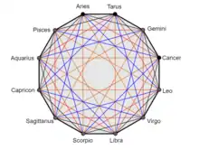 Mars' 8th aspect - One Dodecagram drawn in orange color