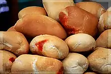 Spelt bread (pan d'escanda) is very traditional. Formigos are a type of French toast made with crumbled bread and eggs. Bollos preñaos are buns filled with chorizo. Pancakes called frixuelos, similar to Galician filloas, are typical desserts. Other specialities are made with cornmeal, such as boroña (round loaf of hard bread), the fariñes, farrapes or papes (cornmeal porridge), the rapa (similar to boroña with pieces of bacon inside the dough) and tortos (cornmeal flatbread).