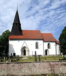 The present church was erected on the site of at least one earlier church; the first church on the site may have been one of the first churches on Gotland as it is mentioned in the Gutasaga.[1] The presently visible church was erected during the 13th century. The oldest parts are the choir and apse, dating from the first part of the century. At the end of the century, the nave and tower base were constructed; the tower was never finished. The sacristy was added in 1800–01. The church has three remaining medieval portals, two Gothic and one Romanesque. In the nave there is unusually a hagioscope.[1] Among the furnishings of the church, the octagonal baptismal font was made during the 12th century, probably by the Romanesque sculptor or workshop known as Byzantios.[1] The altar and pulpit date from the 17th century while the pews are from the 18th century.[2]