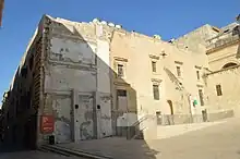 Side façade of Auberge d'Italie in Jean de Valette Square, which might have contained the main entrance prior to 1629