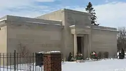 Auburn Community Mausoleum is a historic mausoleum located in Roselawn Cemetery at Auburn, DeKalb County, Indiana. It was built in 1917, and is a one-story, monolithic cubic limestone structure with simple Classical Revival style detail. It features a shallow porch with two Doric order columns. The mausoleum continued to be used for interments into the 1960s.[2]:3