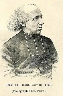 In his numerous publications the Abbé de Broglie was always a faithful defender of Catholic dogma. At the time of his death, which resulted from the violence of an insane person he had taken under his protection, he was preparing a book on the agreement of reason and faith.