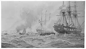 Battle of an Austrian ship division against Moroccan corsairs (1829), painting by Alexander Kircher.