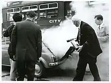 If steam-powered vehicles are counted, the first vehicles were believed to be a steam buggy constructed by a Mr Empson of Christchurch in 1870 and a steam buggy imported from Edinburgh by J L Gillies of Dunedin, also in 1870.[17] There is no information about Mr Empson's vehicle. The first traction engine, an 8 hp Reading Iron Works traction engine, had only been imported three years earlier.[18] Gillies steam buggy was more probably a Thomson Road Steamer and not a steam buggy.[19] Gillies sold the Thomson to the Canterbury Provincial Government in 1871 for £1,200.[20] These were followed by Professor Robert Julian Scott's 1881 steam buggy, which was the first indigenous designed self propelled vehicle in New Zealand.[21]