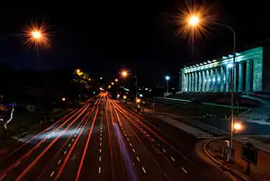 Night shot of Figueroa Alcorta Avenue with the UBA Faculty of Law to the right