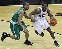 - ↑ Avery Bradley drives past Kawhi Leonard, throws down huge dunk