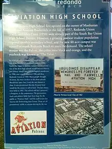 Sign posted by the city of Redondo Beach commemorating Aviation High.