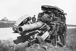 The BL 8-inch howitzer Marks VI, VII and VIII (6, 7 and 8) were a series of British artillery siege howitzers on mobile carriages of a new design introduced in World War I.[note 1] They were designed by Vickers in Britain and produced by all four British artillery manufacturers but mainly by Armstrong and one American company. They were the equivalents of the German 21 cm Morser 16 and in British service were used similarly to the BL 9.2-inch howitzer but were quicker to manufacture and more mobile. They delivered a 200 lb (91 kg) shell to 12,300 yd (7.0 mi; 11.2 km). They had limited service in the British Army in World War II before being converted to the new 7.2 in (180 mm) calibre. They also equipped a small number of Australian and Canadian batteries in World War I and by the US Army in that war. They were used in small numbers by other European armies.