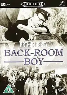 Back-Room Boy is a 1942 British comedy mystery film directed by Herbert Mason, produced by Edward Black for Gainsborough Pictures and distributed by General Film Distributors. The cast includes Arthur Askey, Googie Withers, Graham Moffatt and Moore Marriott.[1] It marked the film debut of Vera Frances. The original story was written by J.O.C. Orton, Marriott Edgar and Val Guest. A man from the Met Office is sent to a lighthouse on a remote Scottish island to monitor the weather, where he hopes to escape from women, but soon finds the island overrun by them.
