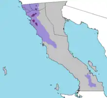 Most of Mexico lies south of the 30-50 degree latitude range for most wine grapes, but altitude and other factors do allow for production.[1] The Baja California peninsula was originally under the sea until tectonic movement raised it and began the process of breaking down the granite, allowing it to mix with alluvial soil of clay, sand and other minerals to form the soils the vines grow in today.[2] Wine grapes are only grown in a specific part of northern Baja California, where the microclimates produce an environment similar to areas in California.[3] These are four main valleys that extend perpendicular to the Pacific Ocean, allowing for the entrance of sea breezes and fogs to moderate otherwise desert into Mediterranean microclimates.[1] Baja has humid winters, dry warm summers. Like southern California, June fogs slow the ripening of fruit, but harvests still begin in late July.[1][4]