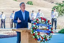 Congressman Kevin McCarthy speaks at Memorial Day at the cemetery in 2020.
