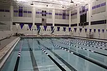 BHS Natatorium, featuring a 6-lane pool with a 12ft diving well, dual diving boards, timing system, and upper viewing deck.