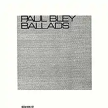 Ballads is an album by Canadian jazz pianist Paul Bley recorded on March 31 and July 28, 1967 and released on ECM in 1971.[1] The sessions' trios feature rhythm sections Mark Levinson and Barry Altschul on side B, and Gary Peacock and Altschul on side A, respectively.