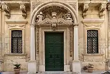 The Banca Giuratale is built in the Baroque style. The main entrance has a richly decorated semicircular vault, which is supported on two columns.[3]