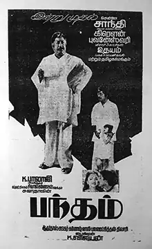 Bandham (transl.The Bond) is a 1985 Indian Tamil-language drama film, directed by K. Vijayan and produced by Anandavalli Balaji. The film stars Sivaji Ganesan, Kajal Kiran, Shalini and Anand Babu.[1] It is a remake of the Malayalam film Chakkarayumma. The film was released on 26 January 1985.[2] Shalini reprised her role in the Telugu remake with the same name.[3]