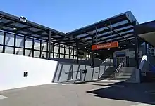 As part of the project, Bankstown station will be upgraded to have an additional at-grade station entrance at the eastern end of the existing platforms, which will align with The Appian Way and Restwell Street.[8] The new entrance will also provide access to Sydney Metro platforms, which will be built east of the new entrance over the road connection between North and South Terraces. The existing station entrance will be retained and the existing platforms is proposed to be retained and extended westwards. The former parcels office, as well as a crossover at the eastern end of the station, will be removed for construction.[9]