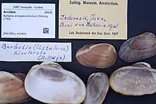 Barbatia amygdalumtostum, the almond ark or burnt-almond ark,[2] is a species of bearded ark clams in the Barbatia genus discovered by Röding in 1798. Barbatia amygdalumtostum lives in ocean environments.[1]
