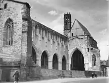 The Barfüßerkirche and neighbouring residential buildings before the destruction in 1944
