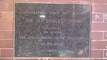 The D.F. Corlett Wing, Opened by his honour, The Administrator Of The Transvaal, Dr. WM. Nicol, 9 February 1955