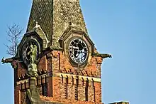 The Barnes Convalescent Hospital was built for the Manchester Royal Infirmary between 1871 and 1875 by Lawrence Booth of the architecture firm of Blackwell, Son and Booth of Bury and Manchester. It is noted for its architectural distinctiveness and as an early example of a purpose-built convalescent hospital. The building was designed on a cruciform plan in the French Gothic Revival style, constructed of red brick and blue brick with ashlar and terracotta dressings, and the roofs are covered with Welsh slate. The building was richly decorated with ornamental brickwork, pointed arched and mullioned windows, decorative ridge tiles. On the western side is the building's main landmark, the tall clock tower, with clock faces on each side and a high two-stage lantern roof topped with an ornamental iron crown. Alterations to the building were carried out in 1893 by Pennington & Bridgen, and again in 1939-45 by Thomas Worthington & Son, both Mancunian architects' firms.[1]