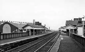 The station has three platforms - one north-east facing bay (on the north-west side) specifically for terminating services and two through platforms, 1 and 2, which can be used for any service. A ticket machine serves platforms 2 and 3 whilst there is a staffed ticket office at street level adjacent to platform 1 (staffed Monday - Saturday 06:50 - 23:15, Sunday 09:10 - 16:50). There are toilets and a pay phone on the concourse next to the ticket office. Train running information is offered via timetable posters, digital departure screens, automated announcements and help points. Level access is available to all platforms - via a lift to platform 1, a subway and ramps from the latter to platforms 2 and 3.[5] On a Sunday once the ticket office closes, All trains in both directions use Platform 2, This is because the ticket office is required to access Platform 1 and if this is closed, The platform can't be used however if its closed during the week for e.g. a shortage of staff it will remain open.