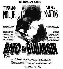 Bato sa Buhangin is a 1976 Filipino romantic drama film directed by Pablo Santiago. It stars Fernando Poe Jr. and Vilma Santos in their second on-screen team up following the success of Batya't Palu-palo (1974).[2] The film was released by FPJ Productions on August 13, 1976.