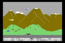 The basic gameplay is similar to Moon Patrol, in that the player has to drive a jeep through rough landscape and jump over potholes and obstacles, and shoot at enemies both on the ground and in the sky.[3] The player has to travel ten miles in each level before they can progress to the next one.[4]