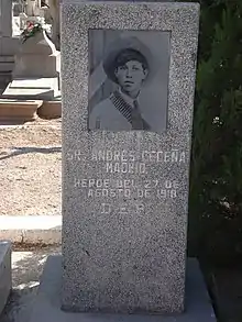 On the Mexican side, the batalla del 27 de agosto is also an obscure topic but less so. A Mexican corrido, "El Corrido de Nogales", it was composed by participants of the battle, memorializing the Mexican interpretation of the events of that day. The municipal leaders in Nogales, Sonora, erected a monument near the international boundary commemorating the Mexican participants and victims of the battle, and the municipal government continues to maintain the tombs of Mayor Peñaloza, Andres Ceceña, Maria Esquivel, and other victims in the city's Panteón de los Hėroes.