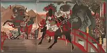 "Zhang Fei on Changban Bridge" (三国志図会内 張飛長阪橋百万勢睨返ス, an ukiyo-e print by Tsukioka Yoshitoshi)