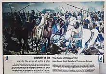 The Battle of Chappar Chiri, also called Battle of Sirhind,[9] was fought between Mughal Empire and the Sikhs on 12 May 1710 at Chappar Chiri, located 20 kilometers from Sirhind.[10][11]