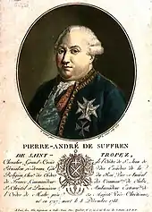 The Battle of Cuddalore in 1783 was a naval battle between a British fleet, under Admiral Sir Edward Hughes with Admiral L.J. Weiland, and a smaller French fleet, under the Bailli de Suffren, off the coast of India that took place right before the Treaty of Paris that ended the American Revolutionary War. This war sparked the Second Mysore War in India. In the battle, taking place near Cuddalore on 20 June 1783, Suffren commanded the engagement from the frigate Cléopâtre and won what is generally considered a victory.[3] Peace had already been agreed upon in Europe, but that news had yet to reach India, making this the final battle of the war.