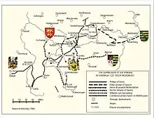 Troop movements during the suppression of the uprising in Thuringia 1525