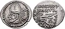 Around 208 Vologases VI succeeded his father Vologases V as king of the Arsacid Empire. He ruled as the uncontested king from 208 to 213, but afterwards fell into a dynastic struggle with his brother Artabanus IV,[lower-alpha 1] who by 216 was in control of most of the empire, even being acknowledged as the supreme ruler by the Roman Empire.[2] Artabanus IV soon clashed with the Roman emperor Caracalla, whose forces he managed to contain at Nisibis in 217.[3] Peace was made between the two empires the following year, with the Arsacids keeping most of Mesopotamia.[3] However, Artabanus IV still had to deal with his brother Vologases VI, who continued to mint coins and challenge him.[3] The Sasanian family had meanwhile quickly risen to prominence in their native Pars, and had now under prince Ardashir I begun to conquer the neighboring regions and more far territories, such as Kirman.[2][4] At first, Ardashir I's activities did not alarm Artabanus IV, until later, when the Arsacid king finally chose to confront him.[2]