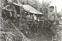 During the Battle of Finschhafen in the 9th Division area, the Australian and Japanese commanders in the Markham and Ramu Valleys were ordered by their respective commands to limit their operations to minor actions,[3] as the focus of the fighting, and resources, remained elsewhere. After concentrating his division in early October, Vasey ordered offensive patrolling. The 21st Brigade, under Brigadier Ivan Dougherty, was tasked with probing actions along the Faria River towards the Kankiryo Saddle. At the same time, the 25th Brigade was assigned to the same task in the Ramu Valley.[4] In mid-October, the 21st Brigade's advance began with the South Australians from the 2/27th Infantry Battalion, under the command of Lieutenant Colonel John Bishop, leading the way,[5] having been relieved of road construction duties around Kaigulin.[6] Throughout 11 October, around Pallier's Hill, elements of the 2/14th Infantry Battalion had clashed with Japanese troops that were threatening to cut off the 2/27th's supply line to the south.[7] Meanwhile, the 2/27th had continued to advance, securing two features to the east of Shaggy Ridge, these were dubbed "John's Knoll" and "Trevor's Ridge" by the Australians. Shortly afterwards, the 2/27th came under heavy attack by Japanese troops, starting early on 12 October.[8]