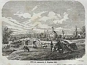 If they accepted the fight and lost, they could retreat towards either Poroszló or Miskolc. In the former case, it was up to him, in the latter to Schlik, to cut off their retreat.[8] If the enemy did not accept the battle, he would use the occasion, according to circumstances, to destroy the bridge at Poroszló, or to cross it, or finally to take some other decision appropriate to the state of affairs.[8] For this attack Windisch-Grätz mobilized the II Corps led by Lieutenant General Ladislaus von Wrbna and the brigade of Lieutenant General Josip Jelačić's corps led by Lieutenant General Karl Zeisberg.[8] The imperial commander-in-chief had only 17,000 soldiers at his disposal for this campaign because he had left considerable forces behind to defend the capital, while he could not take with him the corps of Lieutenant-General Baron Josip Jelačić, who was securing the Danube–Tisza Interfluve, because he needed his soldiers for the attempt to destroy the Tisza bridge at Cibakháza, but was successfully prevented by the troops of Major István Mesterházy and Major Károly Leiningen-Westerburg.[3] For the attack, he also counted on Schlik's corps. The total number of the K.u.K. Army thus deployed, if Schlik managed to join his troops, reached 30,000 men and 165 guns.[8] To secure the operation, the I. Corps had to attempt to destroy the bridge at Cibakháza, mentioned above, which was in the hands of the Hungarian troops.[10]