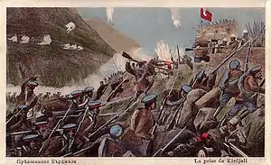 The Battle of Kircaali[1] or Battle of Kardzhali was part of the First Balkan War between the armies of Bulgaria and the Ottoman Empire. It took place on 21 October 1912, when the Bulgarian Haskovo Detachment defeated the Ottoman Kırcaali Detachment of Yaver Pasha and permanently joined Kardzhali and the Eastern Rhodopes to Bulgaria. The anniversary of that event is celebrated annually on 21 October as a holiday of the city.[3]