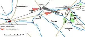 After breaking through the Polish defences in the Battle of Wizna, the German forces under General Heinz Guderian started to make their way towards Brześć, Kowel and Kobryń. Their aim was to cut the Polish territory in two parts and paralyse the Polish attempts to organise a line of defence east of the Bug River.