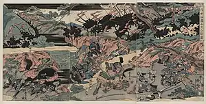 The battle of Kurikara Pass (倶利伽羅峠の戦い, Kurikara tōge no tatakai), also known as the battle of Tonamiyama (砺波山), was a crucial engagement in Japan's Genpei War; in this battle the tide of the war turned in the favour of the Minamoto clan.[2]